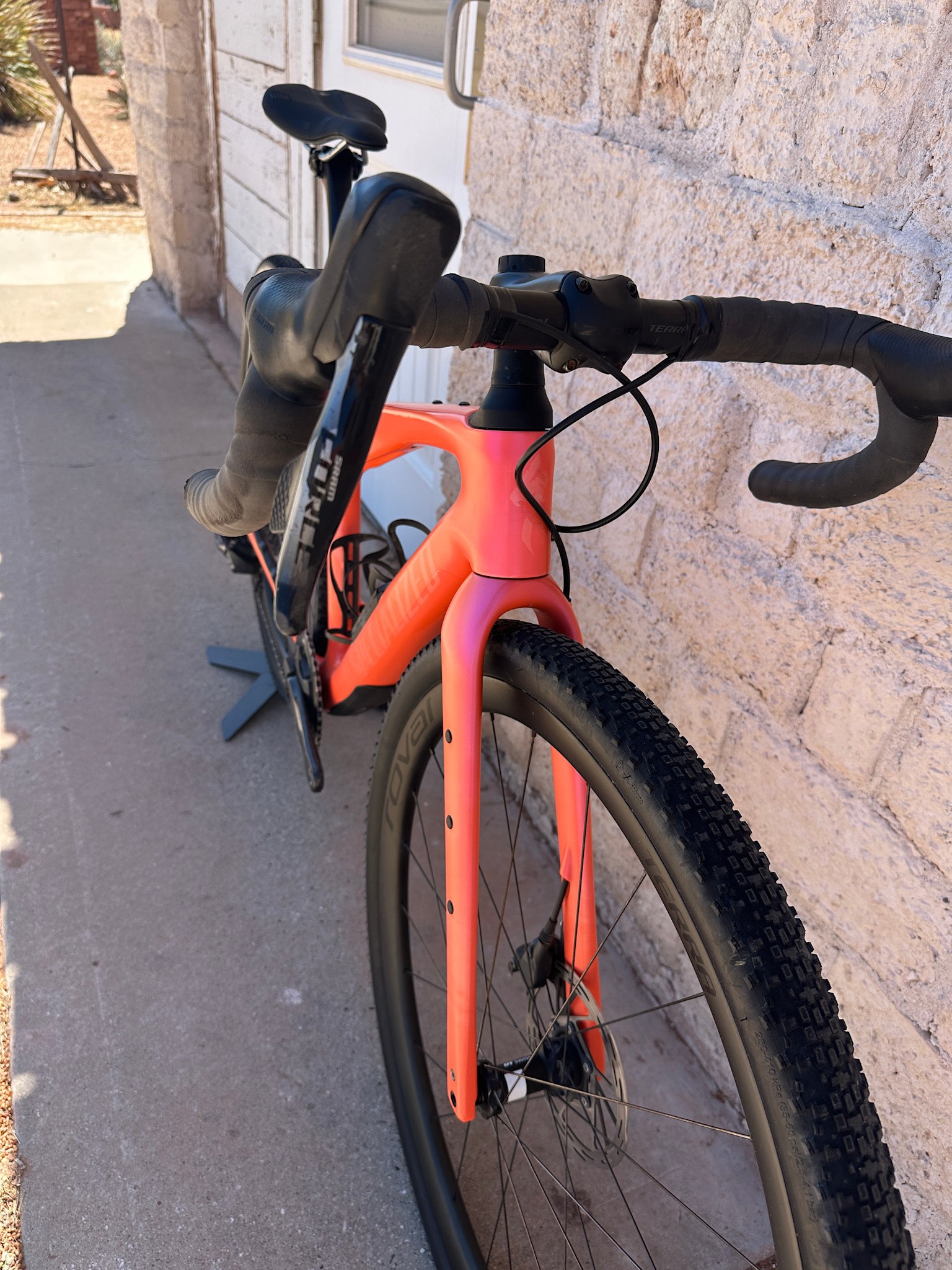 • a high-end gravel bike with a premium custom build, lightweight carbon components, and a Quarq power meter—ready for racing, endurance riding, or adventure gravel.